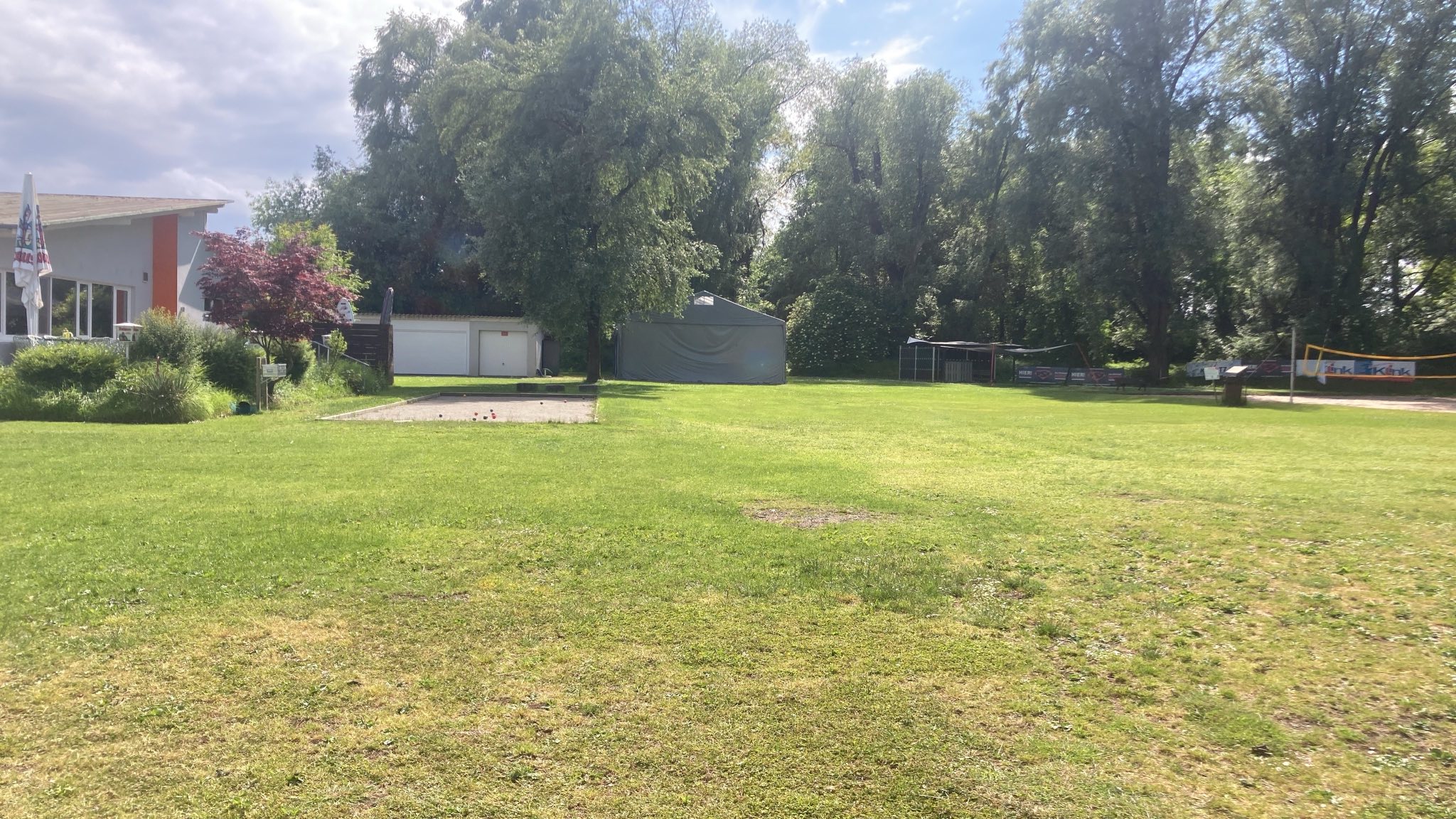 Turnerheim mit Grillstelle, Wiese und Badestrand